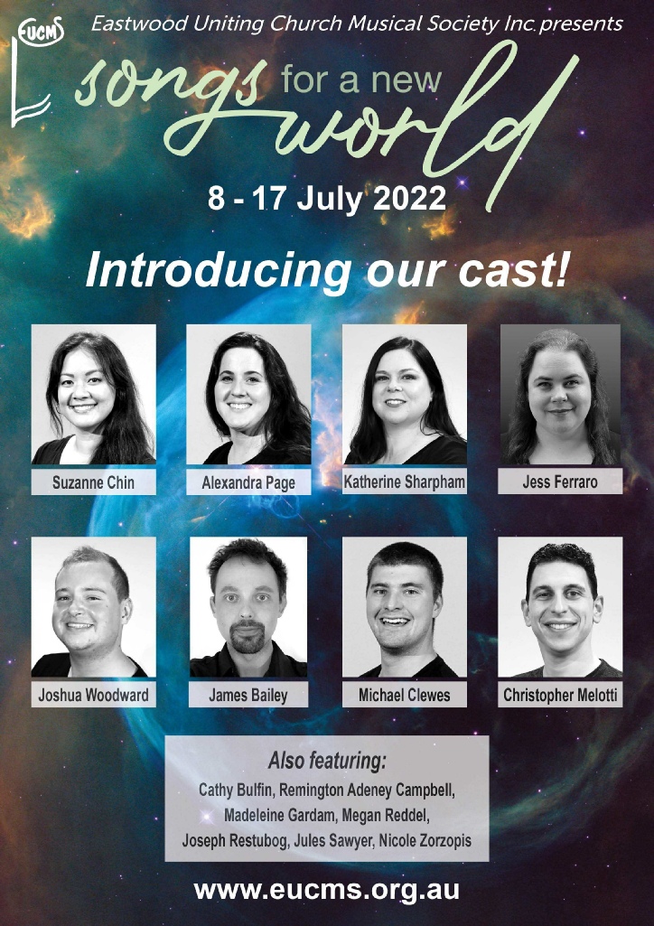 Songs for a New World by Jason Robert Brown is a collection of carefully crafted story-songs elegantly placed into a cohesive whole, referred to as a ‘song cycle’. This musical presents a series of unique characters in different places and different times who all face a moment of decision and change. In a range of jazz, ballroom and Broadway styles, these stories build a picture of anticipation, loss, uncertainty, perseverance, love and hope – messages and themes that will resonate with and inspire audiences in today’s world.